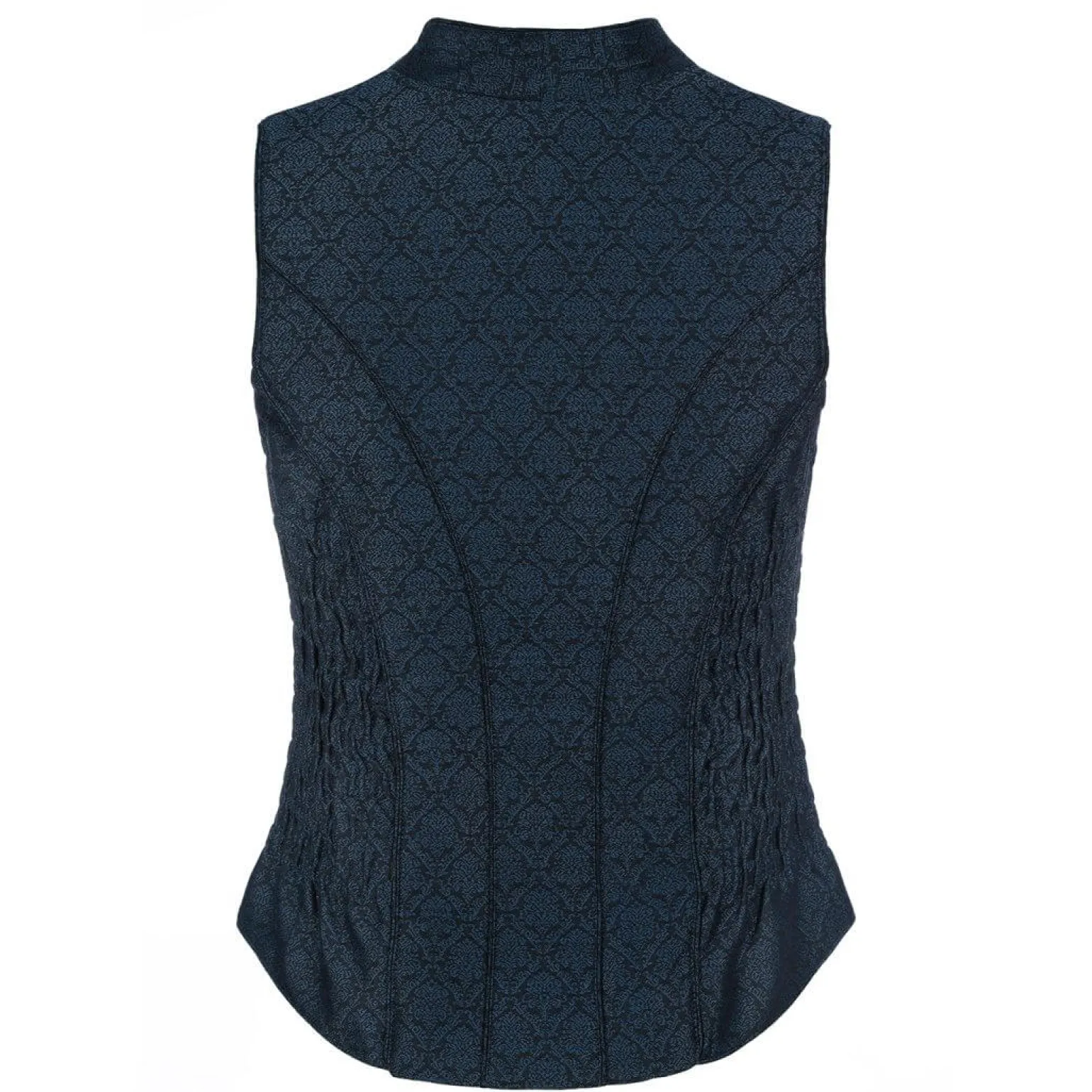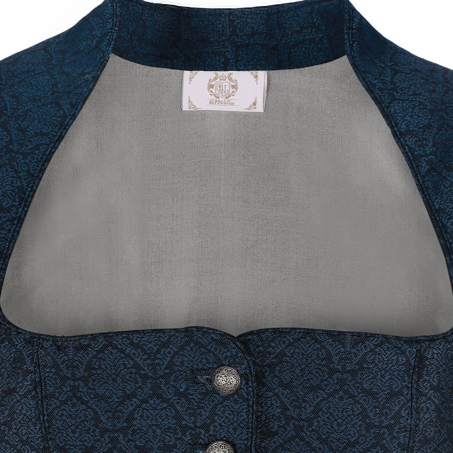 Mit dem Damen Mieder „Arina“ in Dunkelblau erleben Sie eine perfekte Verbindung von Flexibilität und Eleganz. Das dehnbare Material bietet Bewegungsfreiheit und eine ideale Passform. Die 9 Metall-Trachtenknöpfe und die elegante Musterung verleihen dem Design einen stilvollen Touch und kombinieren traditionelles Design mit modernem Komfort.