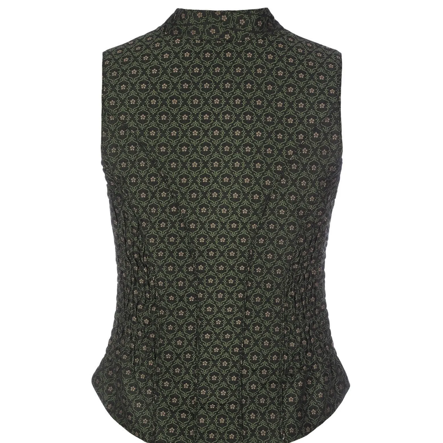 Das Dirndl-Mieder „Arina“ in Moosgrün kombiniert traditionellen Charme mit modernem Komfort. Das dehnbare Material bietet perfekte Passform und Bewegungsfreiheit. Mit edlem Muster und stilvollen Knöpfen vereint es Tradition und zeitgemäße Eleganz.