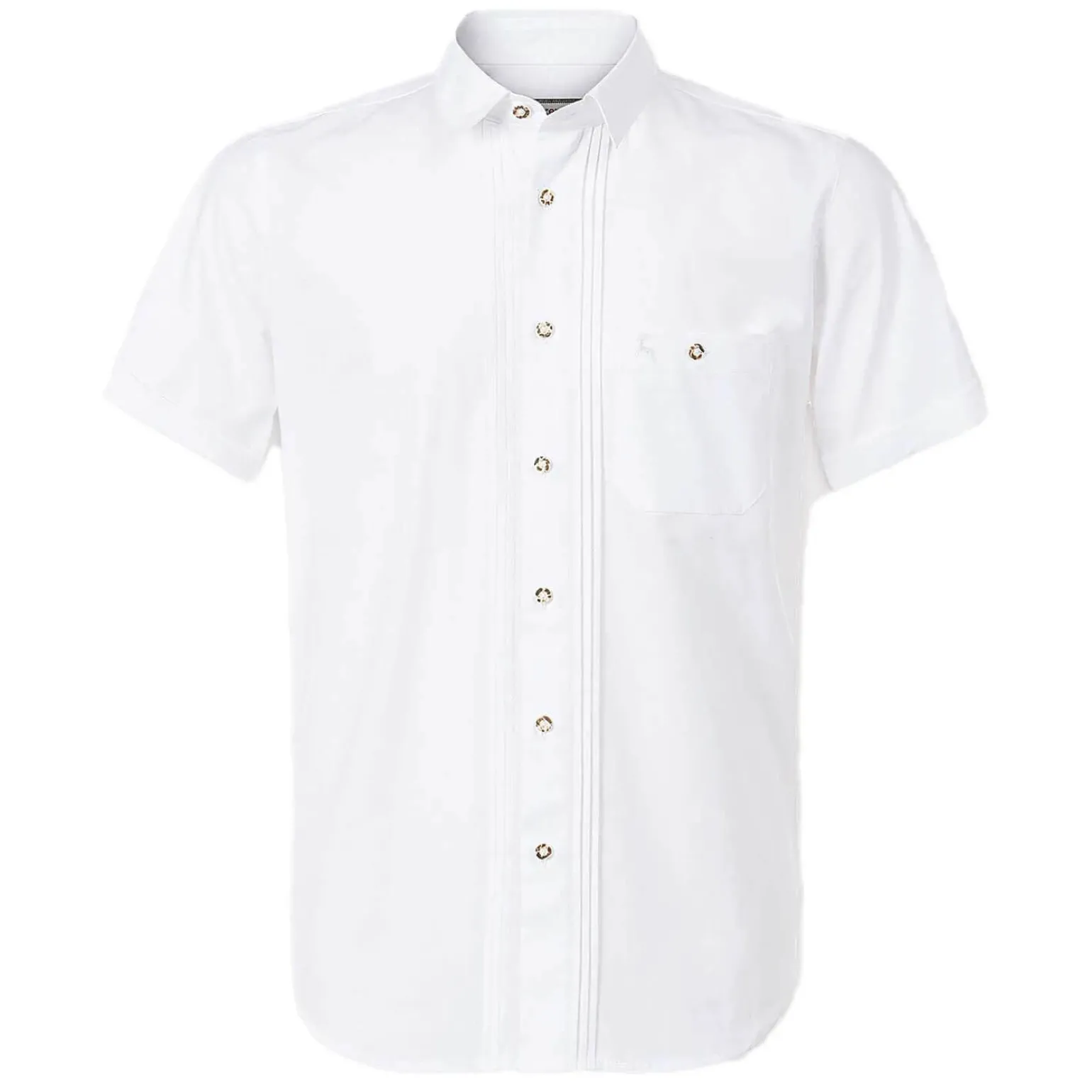 Das Herrenhemd ist ein Trachtenhemd in strahlendem Weiß und verfügt über einen kurzärmligen Schnitt.Hergestellt aus hochwertiger Baumwolle, bietet es ein angenehmes Tragegefühl. Die Holzköpfe an der Knopfleiste verleihen dem Hemd eine rustikale Note.Durch das luftig leichte Material ist es besonders angenehm an warmen Tagen zu tragen.