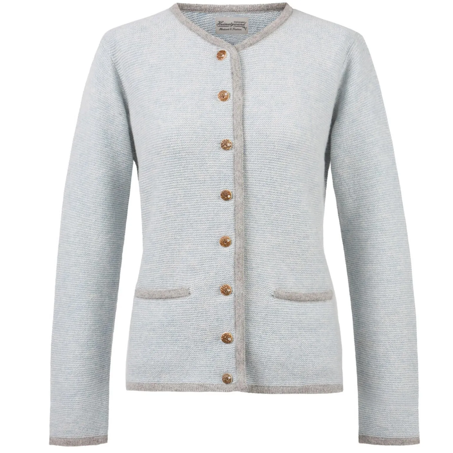 Diese wunderschöne Strickjacke in einem zarten Hellblau ist ein absolutes Must-Have für jede stilbewusste Garderobe. Mit ihrem charmanten Design und den besonderen Details wird sie garantiert zum Lieblingsstück in Ihrer Kollektion.Das zarte Hellblau verleiht dieser Strickjacke eine frische, lebhafte Ausstrahlung. Es ist eine Farbe, die sich mühelos in Ihre bestehende Garderobe integriert und perfekt zu Jeans und Lederhosen passt.Die dezenten hellgrauen Einfassungen setzen einen schönen Akzent und verleihen der Jacke eine zeitlose Eleganz. Sie harmonieren perfekt mit dem hellblauen Grundton und runden das Design gekonnt ab.Um die Langlebigkeit dieser Strickjacke zu gewährleisten, empfehlen wir eine schonende Handwäsche oder die Reinigung in einem spezialisierten Wäschereiservice.