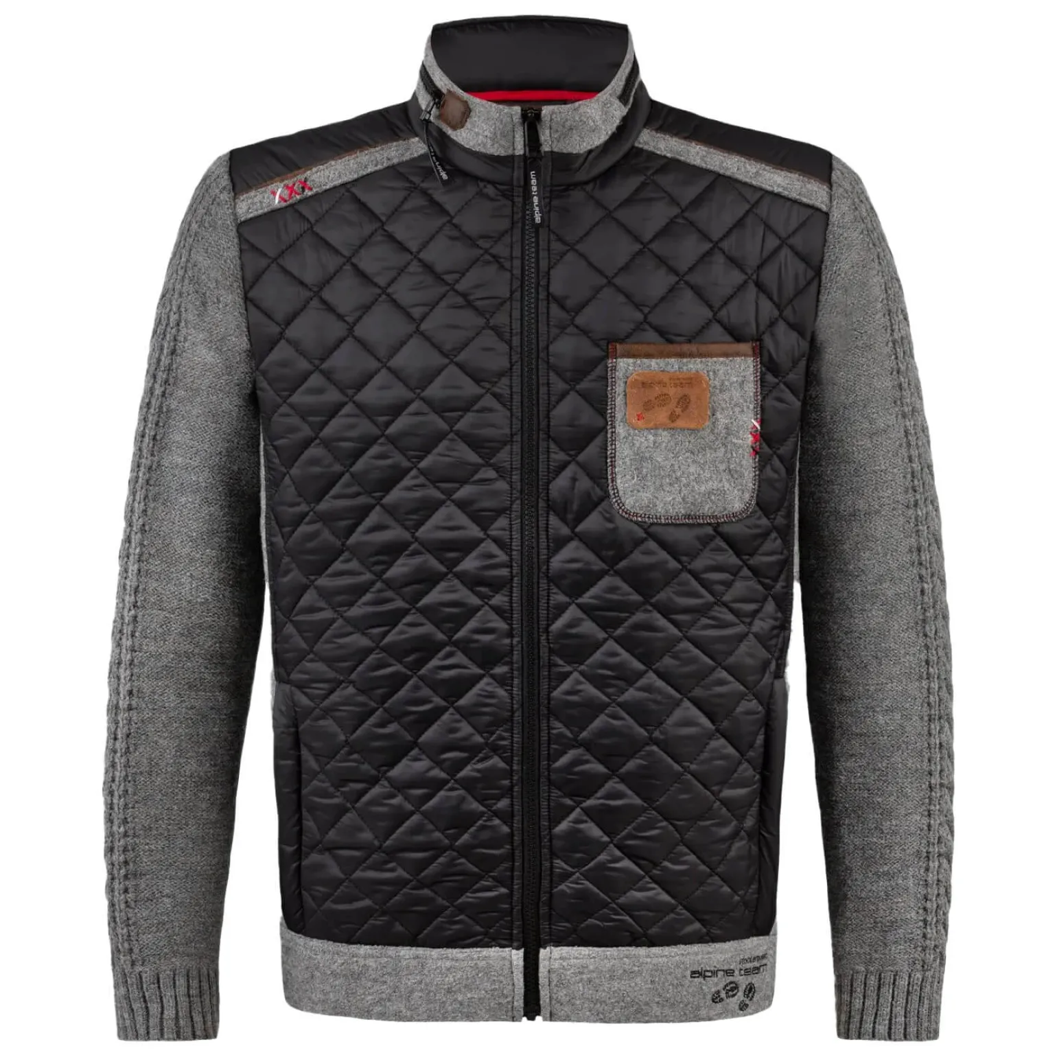 Diese modische Kombi-Steppjacke lässt sich wunderbar entweder trachtig oder mit Jeans kombinieren. Mit dem außerordentlich exquisitem Materialmix präsentiert sich diese trendige „Lifestyle Jacke“ und beeindruckt neben der markanten Optik auch mit trachtigen Details. Die luxuriöse Stocktex-Qualität mit Wattierung wirkt wärmeisolierend und atmungsaktiv. Somit hält die Jacke auch beim nächsten Spaziergang oder Bergabenteuer mollig warm. Der klassische Stehkragen ist mit einem Zipper versehen und unterstreicht den sportiven Flair.Das Logo auf der Vorderseite rundet die Jacke noch zusätzlich ab.
