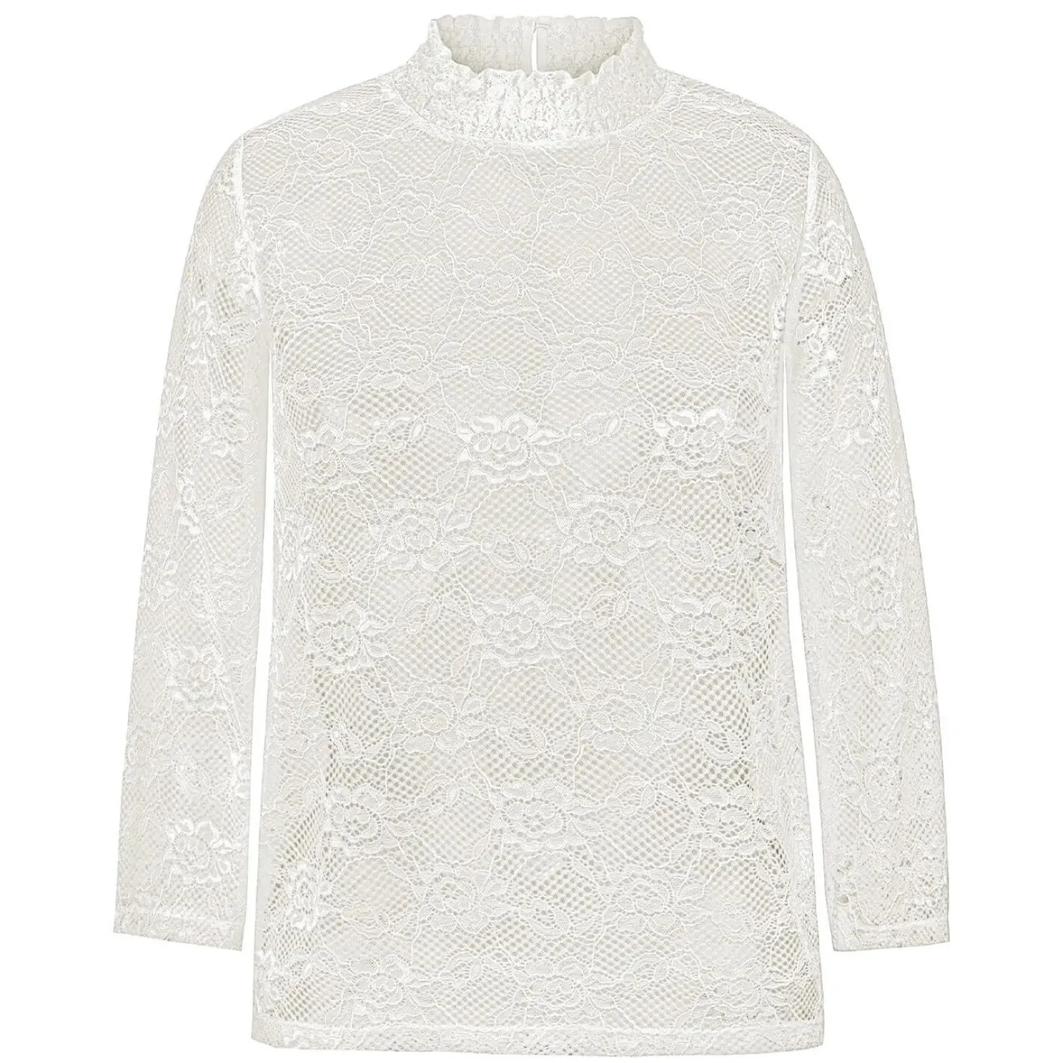 Mit dem Damen Spitzen-Shirt „Molly“ in Creme setzen Sie auf eine gelungene Mischung aus Tradition und modernem Design. Das hochgeschlossene Langarm-Shirt aus edlem Spitzenstoff, der Polyamid und Elastan enthält, verleiht Ihnen eine feminine Ausstrahlung und einen trendigen Akzent. Die gerade Passform und der elegante Stehkragen mit Perlknöpfen sorgen für eine besondere Eleganz.