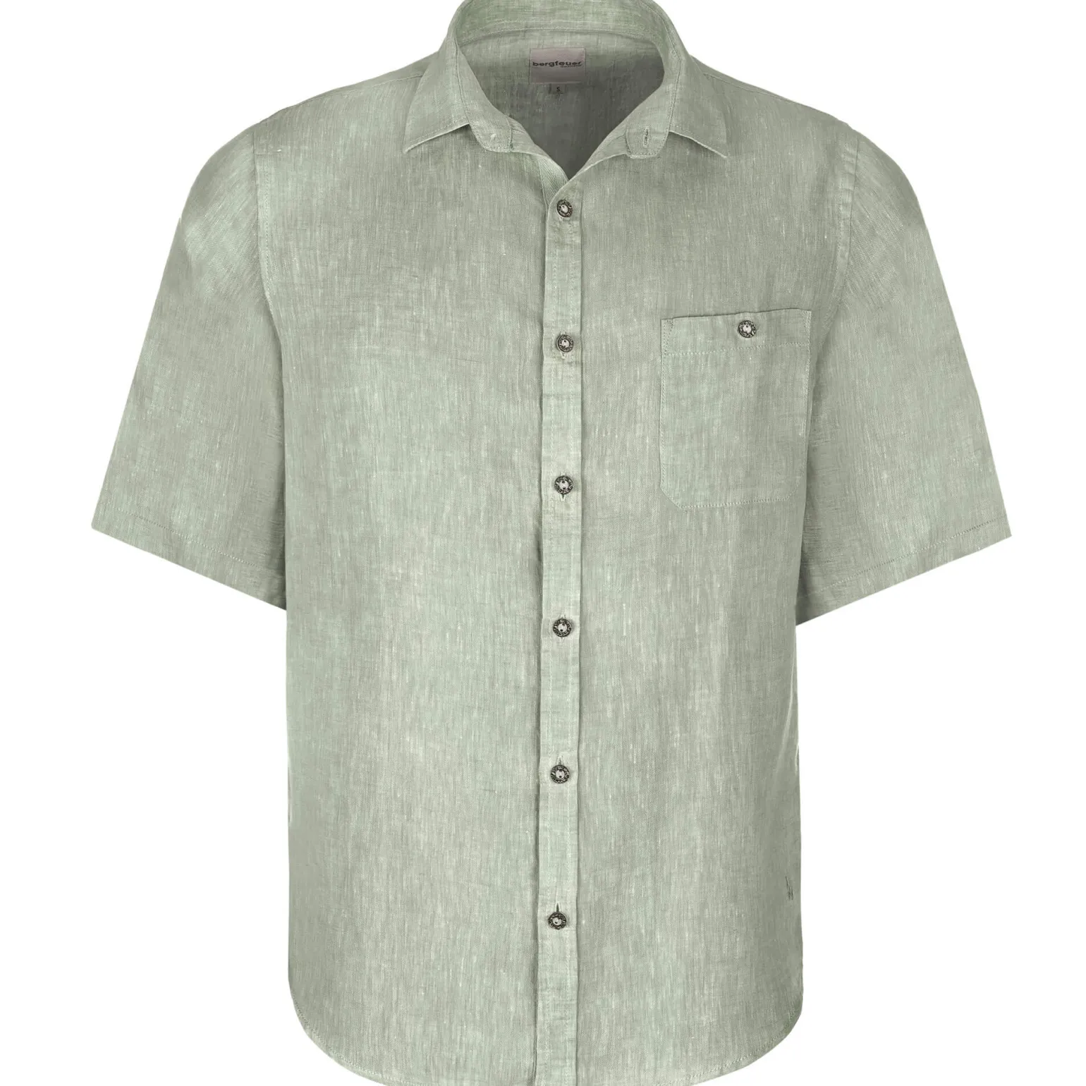 Das Herren Leinenhemd „Vincent“ in Salbei bietet kurzen Arm, klassischen Kragen und hohen Tragekomfort. Aus Leinen und Baumwolle gefertigt, mit Knopfleiste und Brusttasche.