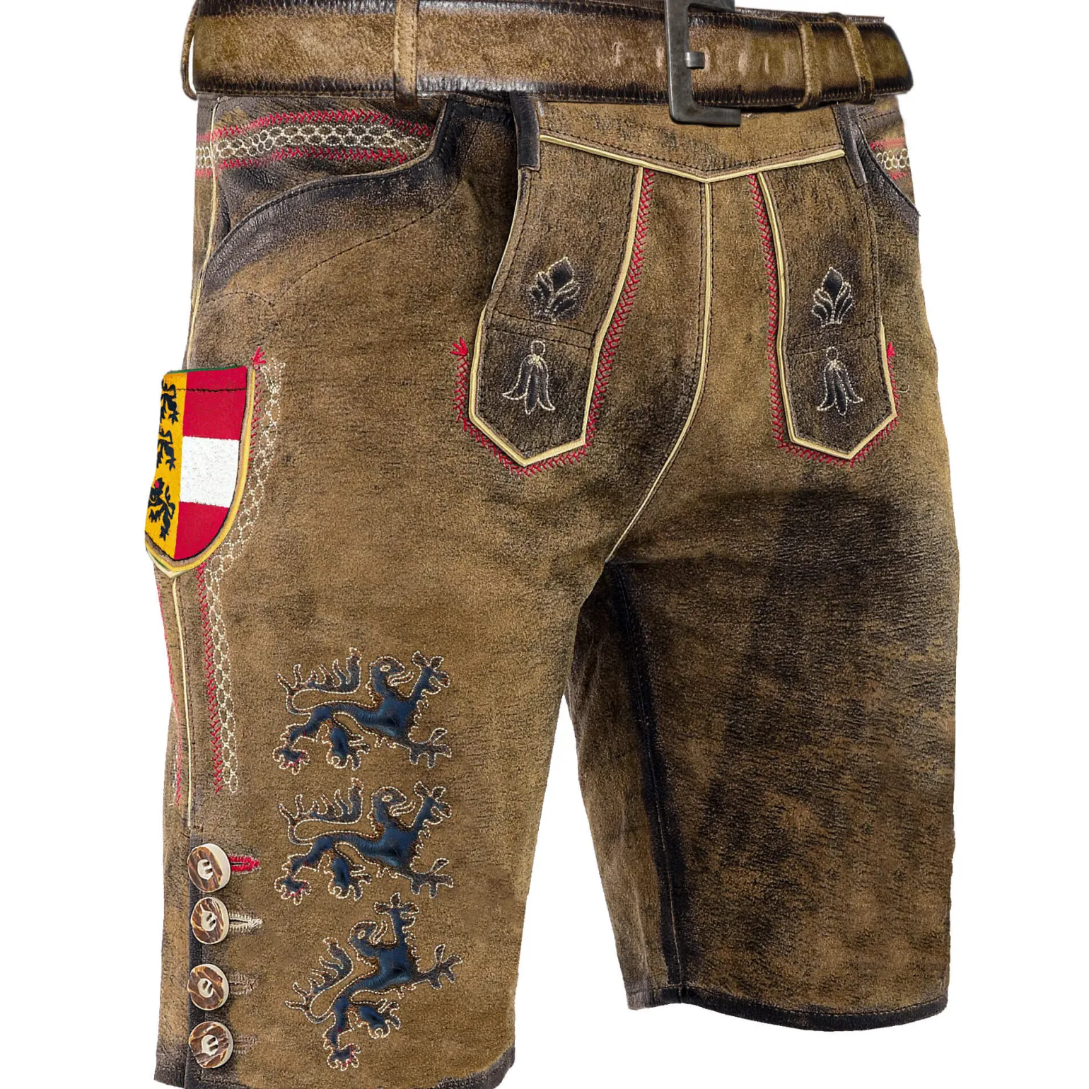 Die Lederhose besticht im modernen Kärntendesign, das gekonnt Tradition und zeitgenössische Elemente miteinander verbindet. Die ausgewogene Mischung aus klassischen Details und modernen Akzenten macht sie zum unverzichtbaren Kleidungsstück für alle, die Brauchtum schätzen und gleichzeitig einen Hauch zeitgemäßer Eleganz suchen.Der warme Braunton wird durch aufwändige Stickereien und ein farbiges Wappen bereichert, das die regionale Zugehörigkeit stolz betont. Diese gelungene Verbindung aus traditioneller Symbolik und modernem Design macht die Hose zu einem praktischen Begleiter und einem stilvollen Statement für Liebhaber zeitgemäßer Traditionen.