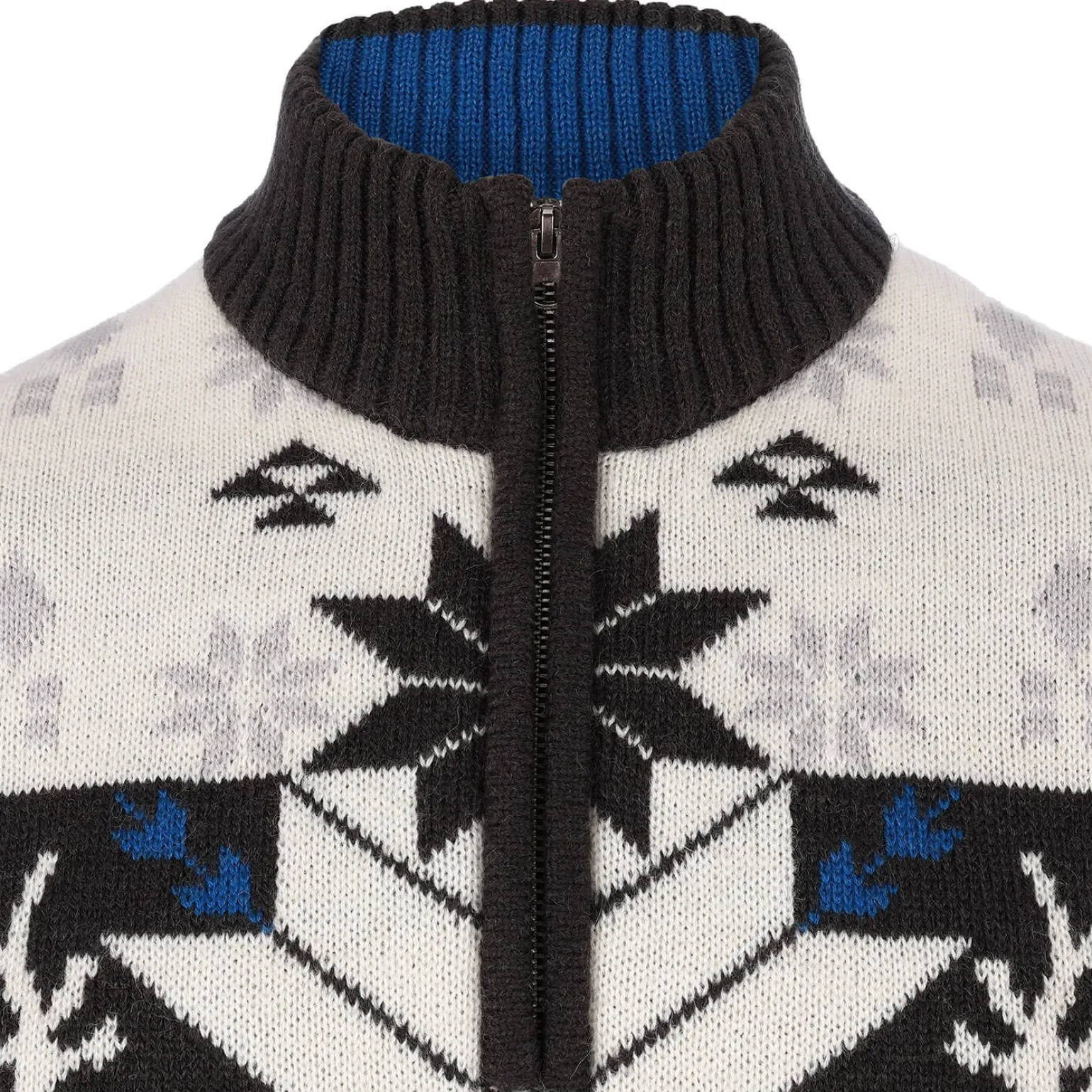 Dieser Norwegerpullover vereint traditionelle Handwerkskunst mit zeitloser Eleganz. Die Hauptfarben dunkelgrau und ein strahlendes Weiß, harmonieren perfekt miteinander und verleihen dem Pullover eine erfrischende Klarheit.Der markante Zipp am Ausschnitt ermöglicht ein einfaches An- und Ausziehen und fügt dem Design einen modernen Touch hinzu.Hergestellt aus hochwertiger Wolle, bietet dieser Norwegerpullover nicht nur Stil, sondern auch Wärme und Komfort. Die sorgfältige Verarbeitung garantiert eine Langlebigkeit, die es Ihnen ermöglicht, dieses zeitlose Stück für viele Winter zu genießen.