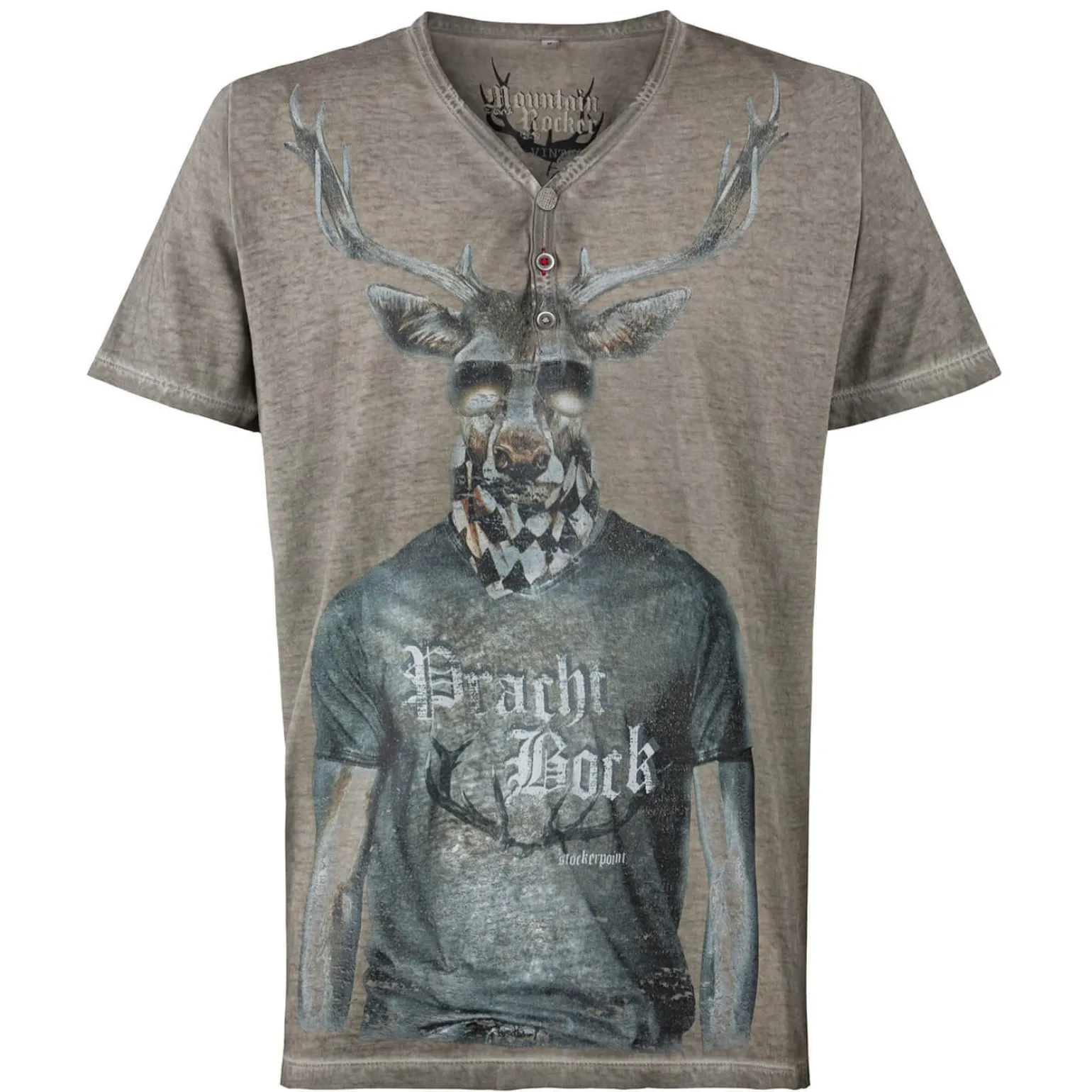 Das trendige Herren T-Shirt im lässigen Vintage Look aus 100% Baumwolle passt perfekt zur Lederhose oder auch lässig zur Jeans. Strapazierfähige Qualität und hoher Tragekomfort zeichnen dieses Produkt besonders aus. Der V-Ausschnitt mit Knopfleiste ist mit passend abgestimmten Knöpfen verziert und sorgt zusätzlich für den einzigartigen Look.