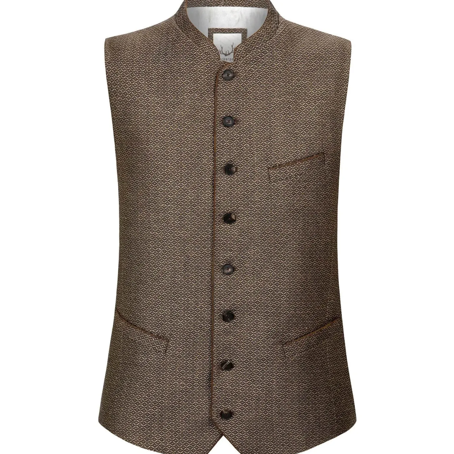 Die zeitlose Trachtenweste aus fein gewebtem Strukturstoff.Der elegante Stehkragen und die geschmackvollen Paspeln in Lederoptik sind charakteristisch für ihren unverkennbaren Stil. Die traditionell gerade Schnittführung gewährleistet eine herausragende Passform. Der Rücken, gefertigt aus schwarzem Baumwollstoff, kann mittels eines Riegels individuell angepasst werden.Die raffiniert gestalteten, gelaserten Knöpfe verleihen der Weste eine gekonnte Eleganz.Diese Trachtenweste stellt die perfekte Ergänzung zu unseren klassischen Trachtenhemden und Lederhosen dar.