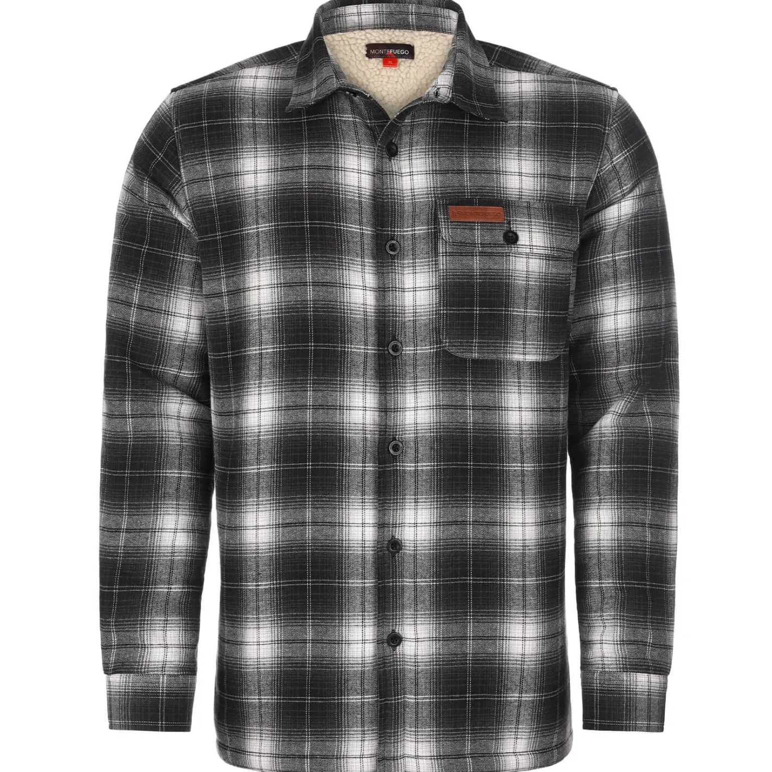 Ideal für kalte Wintertage ist die Schwarz-Weiß gepolsterte Flanelljacke „Fleece“. Sie bietet Stil und Komfort mit einem klassischen Karomuster und Fleecefutter, das für angenehme Wärme sorgt. Verziert ist sie mit einer Brusttasche und einem kleinen, aufgenähten Logo-Badge aus Leder.
