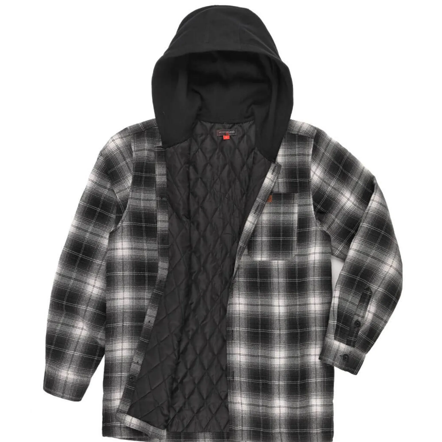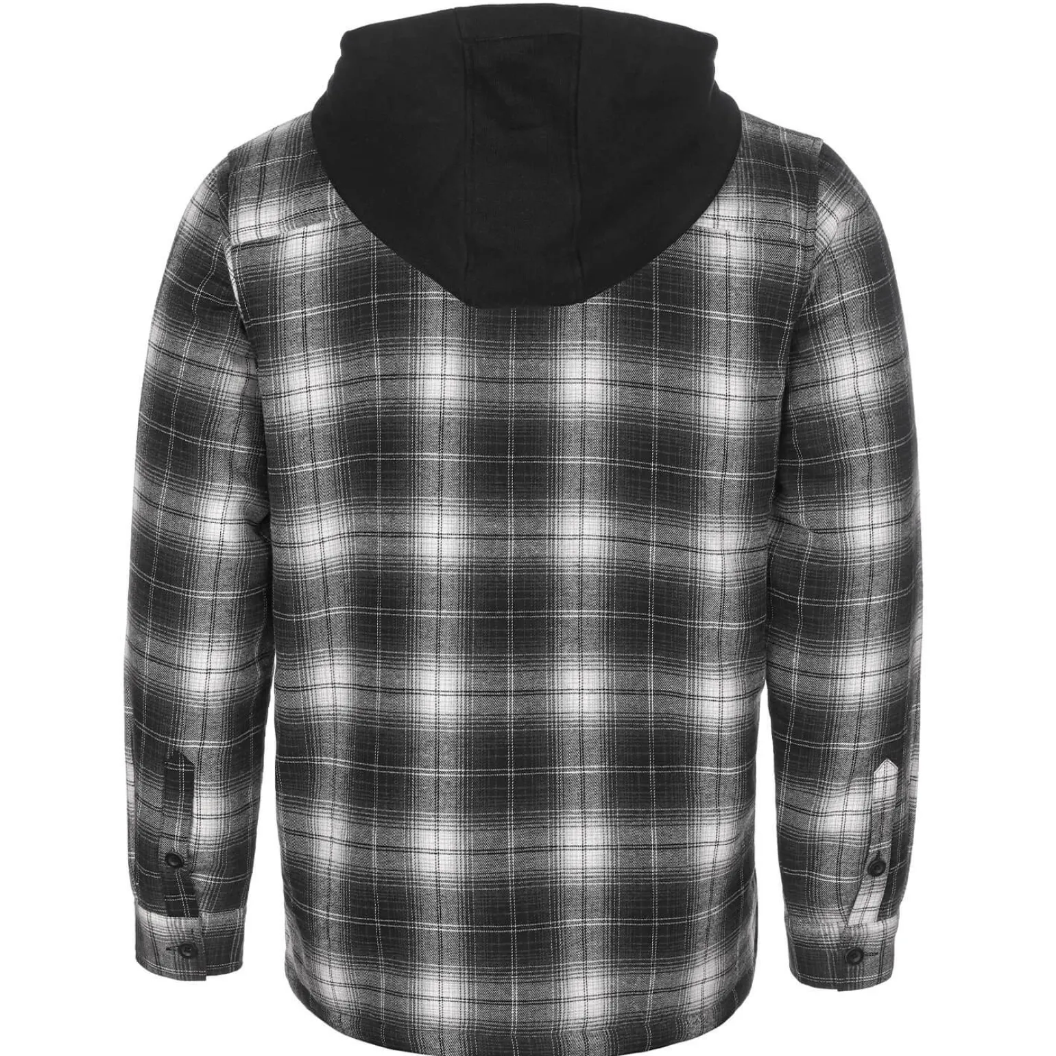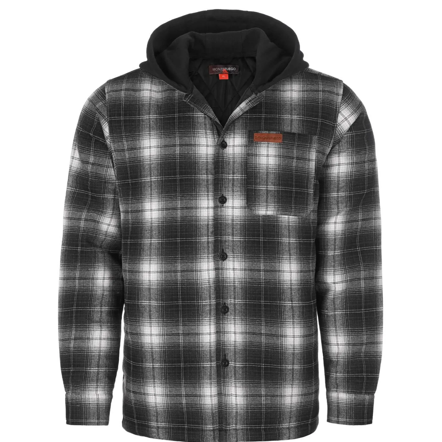 Perfekt für kalte Wintertage ist die gepolsterte Herren-Flanelljacke im modernen Schwarz-Weiß-Karo-Muster. Sie ist leicht, warm und atmungsaktiv und bietet hohen Tragekomfort. Die Kapuze, die Brusttasche und die praktische Knopfleiste sorgen für zusätzlichen Schutz und Funktionalität.