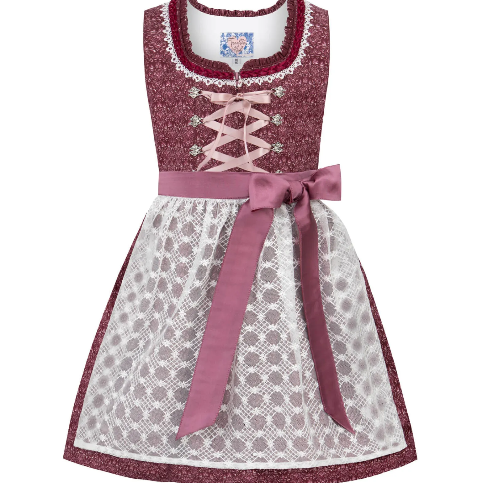 Das edle Dirndl aus pflegeleichter Baumwolle verzaubert durch das florale gedruckte Allover Muster und ist mit liebevollen Details versehen. Für den trendigen Trachten Look sorgen die eingearbeiteten Rüschen am Halsausschnitt, die aufgenähten Zierborten sowie die verzierten Miederhaken.Die Schnürung mit farbigem Satinband unterstreicht dieses stilvolle Design. Durch die filigrane, farblich abgestimmte Spitzenschürze entsteht der besondere Look.