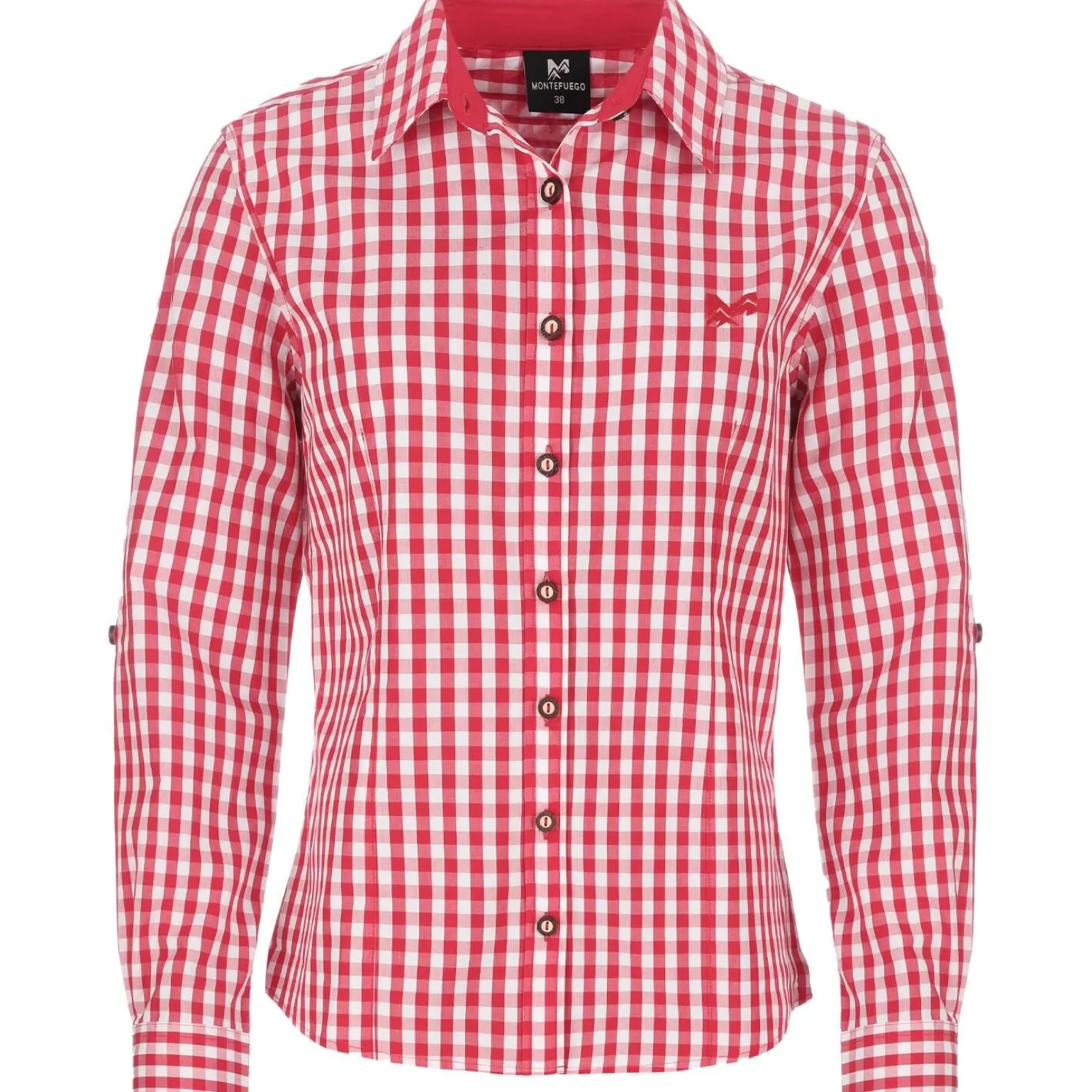 Klassische langarm Damenbluse aus Baumwolle, mit schönen Knöpfen und in taillierter Passform. Die Bluse ist Rot-weiß kariert, und die Ärmellänge kann durch einen Knopf verstellt werden.
