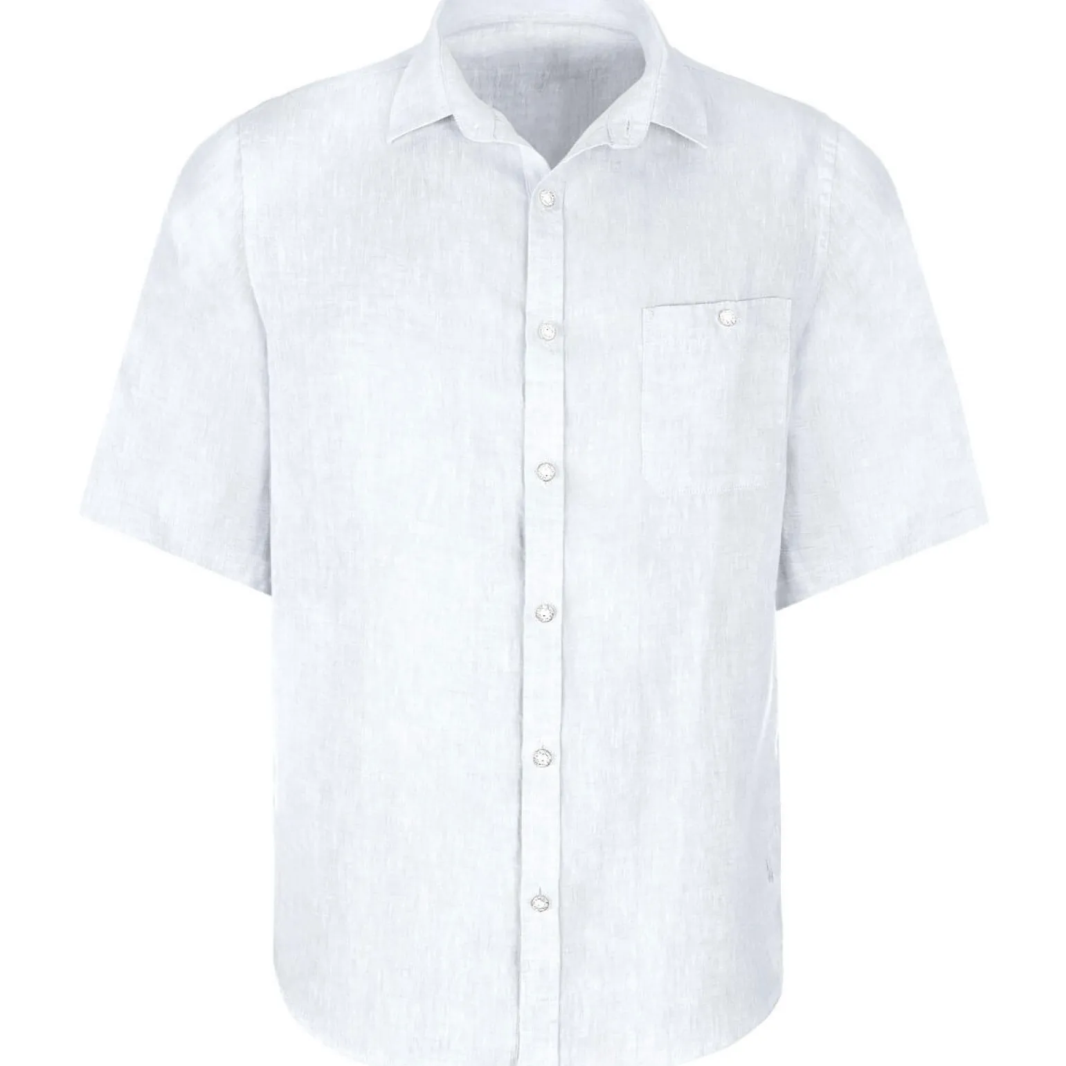 In Weiß präsentiert sich das Herren Leinenhemd ‚Vincent‘ mit kurzen Ärmeln und klassischem Kragen. Verziert mit Brusttasche und Knopfleiste, verleiht es eine edle Note. Aus Leinen und Baumwolle gefertigt, bietet es hohen Tragekomfort.